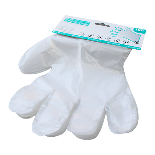 Рукавички одноразові поліетиленові з єврослотом 100шт. Розмір S