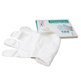 Рукавички одноразові поліетиленові (100 штук) - розмір S.Рукавички виготовлені з прозорого поліетилену товщиною 10мкн.Упаковка - єврослот - 100 штук.Поліетиленові рукавички захищають руки від забруднень, вологи і т.п. Рукавички не анатомічні, нестерильні. Сфера застосування рукавичок: клінінгові організації, підприємства громадського харчування, медичні заклади і т.п.