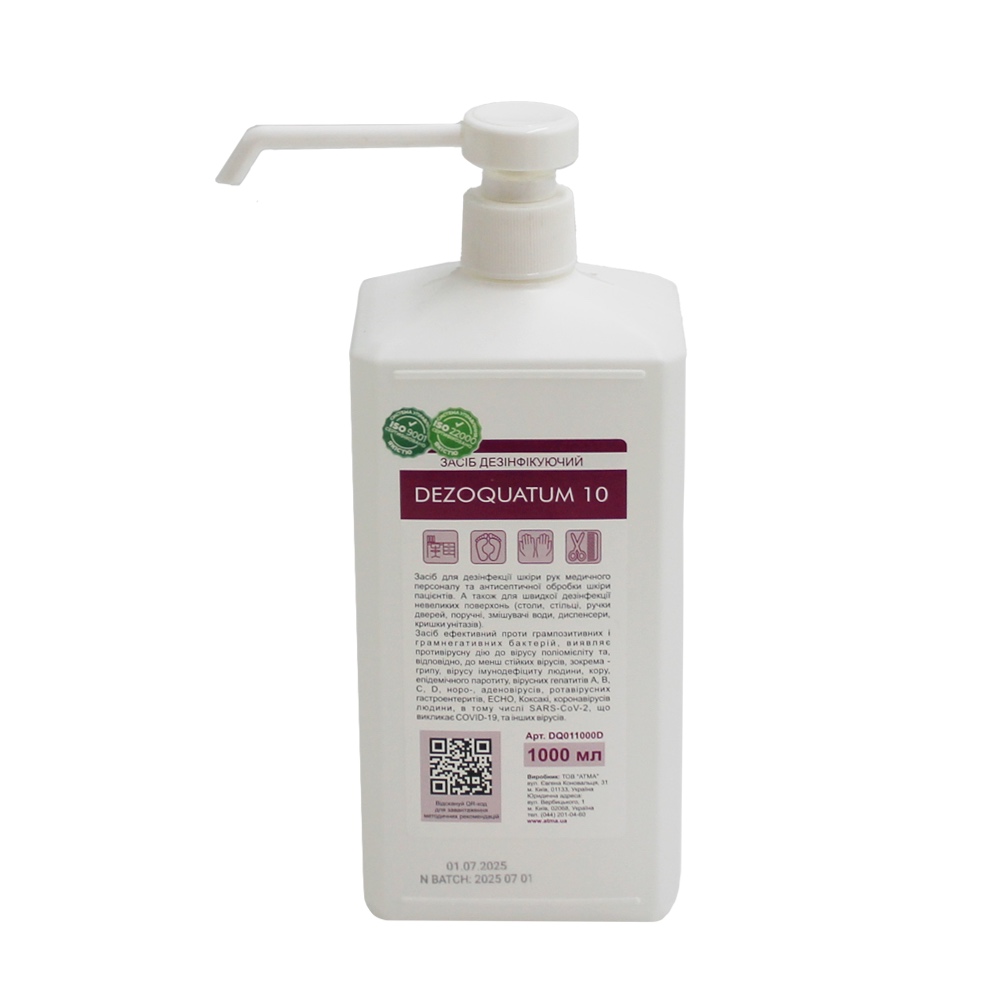 Засiб для дезiнфекції шкіри рук медичного персоналу та антисептичної обробки шкіри пацієнтів. А також для швидкої дезінфекції невеликих поверхонь (столи, стільці, ручки дверей, поручні, змішувачі води, диспенсери, кришки унітазів). Засіб ефективний проти грампозитивних і грамнегативних бактерій, виявляє противірусну дію до вірусу поліомієліту та, відповідно, до менш стійких вірусів, зокрема - грипу, вірусу імунодефіциту людини, кору, епідемічного паротиту, вірусних гепатитів А, В, С, D, норо-, аденовірусів, ротавірусних гастроентеритів, ECHO, Коксакі, коронавірусів людини, в тому числі SARS-CoV-2, що викликає COVID-19, та інших вірусів. Застосування: готовий до застосування засіб, який використовують нерозведеним. На сухі руки нанести 3 мл засобу та втирати протягом 15 секунд. На невеликі поверхні наносять за допомогою розпилювача та серветки. Більш детальну інформацію дивись в методичних рекомендаціях або відскануй QR-код. Застереження: для зовнішнього застосування. Не допускати контакту зі слизовими оболонками! У разі потрапляння в очі промити великою кількістю води і за потреби звернутись до лікаря. При випадковому проковтуванні потерпілому рекомендується прополоскати ротову порожнину водою і випити велику кількість води. Не викликати блювоту! За потреби звернутись до лікаря. Засіб є пожежонебезпечним, забороняється виконувати роботи із дезінфекції у приміщеннях за наявності джерел відкритого вогню та тепла. При випадковому розливанні великої кількості засобу забезпечують інтенсивне провітрювання приміщення. Розлитий засіб збирають піском або іншим негорючим матеріалом, що добре поглинає рідину. Очищену поверхню промивають водою. Склад: 72-77% спирт ізопропіловий, вода підготовлена, гліцерин, 0,15% алкілдиметилбензиламоній хлорид. Умови зберігання: в чистих, сухих, закритих складських приміщеннях, за відсутності прямого потрапляння сонячних променів, у щільно закритій оригінальній тарі на відстані не ближче ніж 1 м від нагрівальних приладів, за температури від +5 С до +25 С.