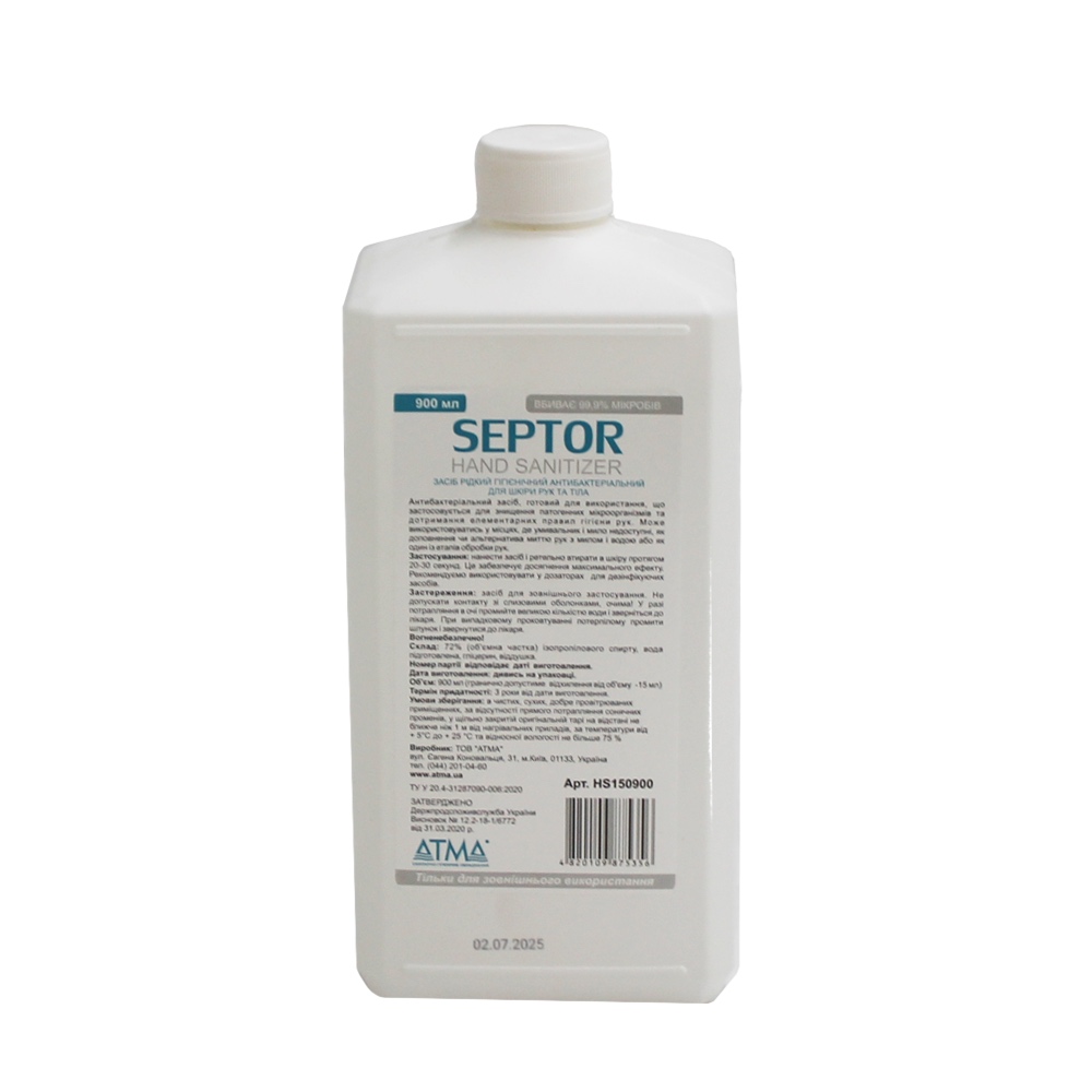 Засіб рідкий гігієнічний антибактеріальний для шкіри рук та тіла SEPTOR 900мл