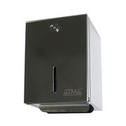 Тримачі паперових рушників V-складка, місткі і надійні в обслуговуванні. Тип рушників що використовуються - пачки. Виготовлений із нержавіючої сталі марки AISI 304 із глянцевим оздобленням товщиною 0,8 мм.Габаритні розміри - 170x245x120 мм, що дозволяють розмістити дозатор навіть у невеликих санітарних кімнатах. В комплект входить кріплення і ключ. Використовують в санітарних громадських кімнатах із середньою і низькою відвідуваністю: ресторани, кафе, бістро, поліклініки, салони краси.